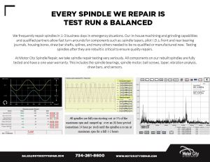 Full certification documentation accompanies each repaired spindle, providing complete traceability and performance verification.